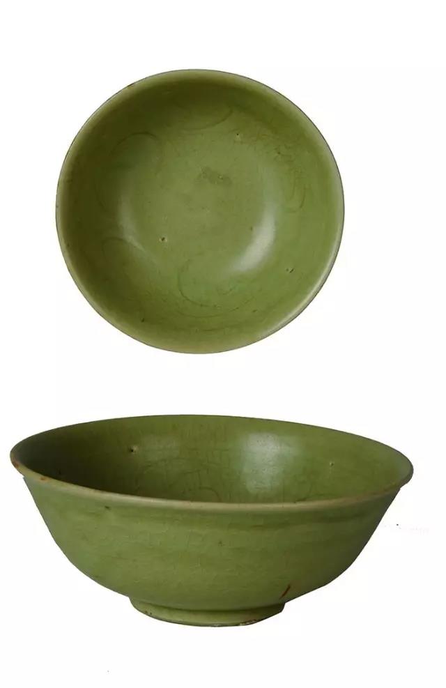 此碗口径20厘米,底径7.7厘米,高7.7厘米,重690克,为国家二级文物,侈口,圆弧腹,圈足,平底露胎,碗内开片饰划花,通体施青釉,釉色青翠欲滴、温润如玉,为宋代六大窑系之一龙泉窑的精品。