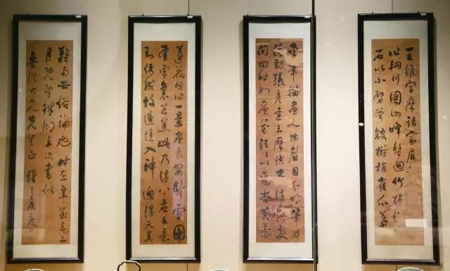 四条屏是4幅一组的书法,该四条屏每幅长170厘米,宽37.5厘米,幅中宣纸部分长117厘米,宽27厘米。侯度,字谨之,号断指生,清代咸丰年间人,家住滁城西大街。清光绪《滁州志》载其事迹:“能诗,行草得晋人意。李昭寿自陈功德,召令书石,度不从,世忠大怒,缚至,将手乃之……卒断其右拇指,血注丈余,不知痛也……度自是更号断指生,日遨游大江南北,名籍甚,所诣亦益进”。这组四条屏系行草书,流畅飘逸,最能代表侯度书风。