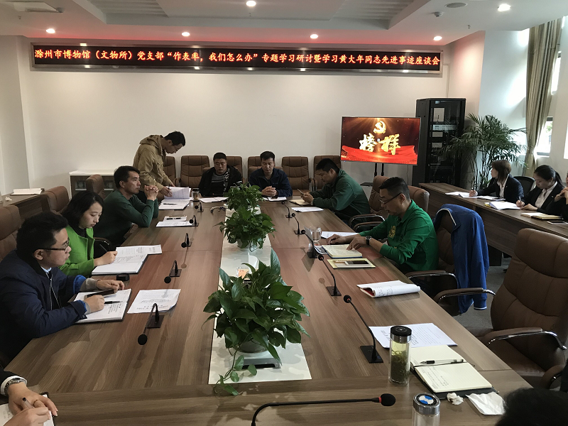 10月17日上午,市博物馆(文物所)党支部召开了“作表率,我们怎么办”专题学习研讨暨学习黄大年同志先进事迹座谈会和观看廖俊波、沈浩同志先进事迹。