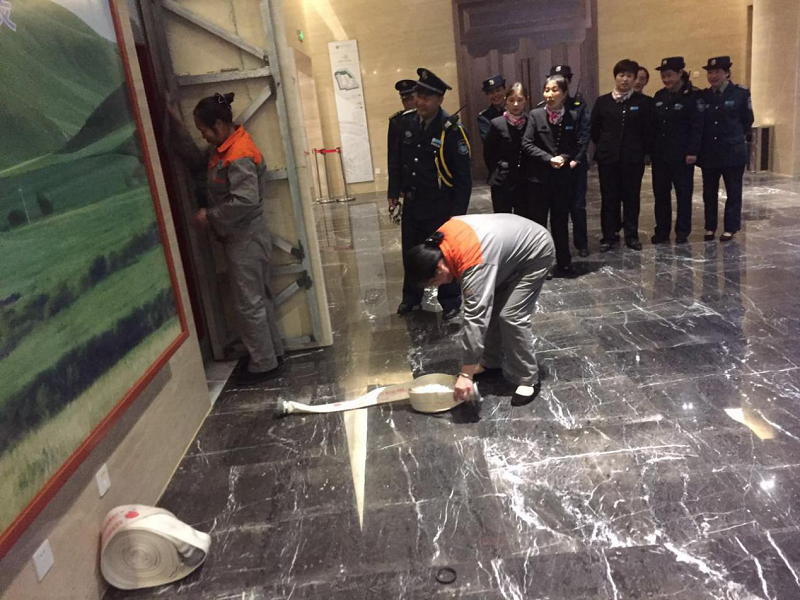 11月9日是全国“119消防宣传日”,为进一步加强博物馆消防安全管理,增强全体员工的消防安全意识,合肥政文外滩物业公司在博物馆一楼大厅开展了消火栓操作模拟演练。