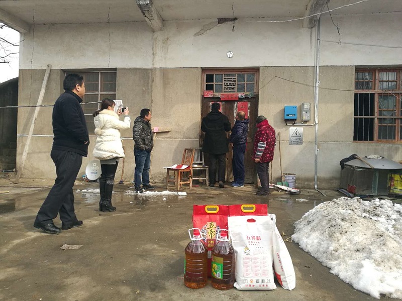 春节将至,2月2日,必威betway精装版app(文物所)工作人员一行来到凤阳县小溪河镇金庄村和扶贫工作队队长兼金庄村第一书记张继一起走访慰问因病致贫的贫困户赵守云一家,张继书记详细询问了解赵守云的身体情况、家庭状况、收入来源以及生活中遇到的实际困难,并鼓励他要保持乐观的心态,坚定生活的信念,敢于直视眼前的困难,在社会各界的帮助下积极渡过难关。随后张继书记和博物馆工作人员为贫困户贴上新春对联并送上慰问金和慰问品。博物馆工作人员向金庄村赠送了1000幅对联。