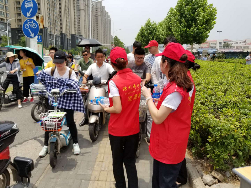 6月8月正值高考期间,必威betway精装版app志愿者们在实验中学考场外设“补水服务站”助力高考,为结束考试的考生和等候的家长们在炎炎夏日送上清凉的矿泉水。