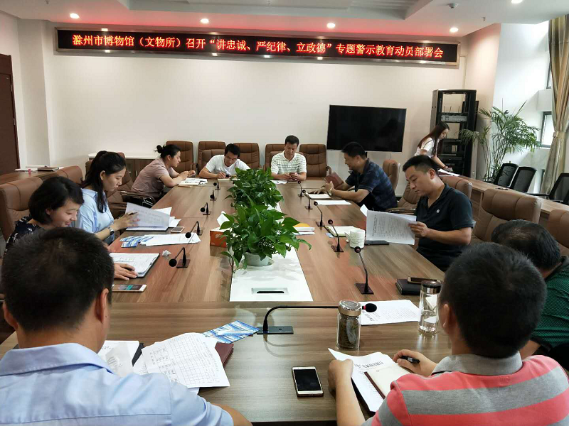 根据中央、省委、滁州市委要求,在全市宣传系统党员干部中开展“讲忠诚、严纪律、立政德”专题警示教育。6月20日上午必威betway精装版app(文物所)召开“讲忠诚、严纪律、立政德”专题警示教育动员部署会。
