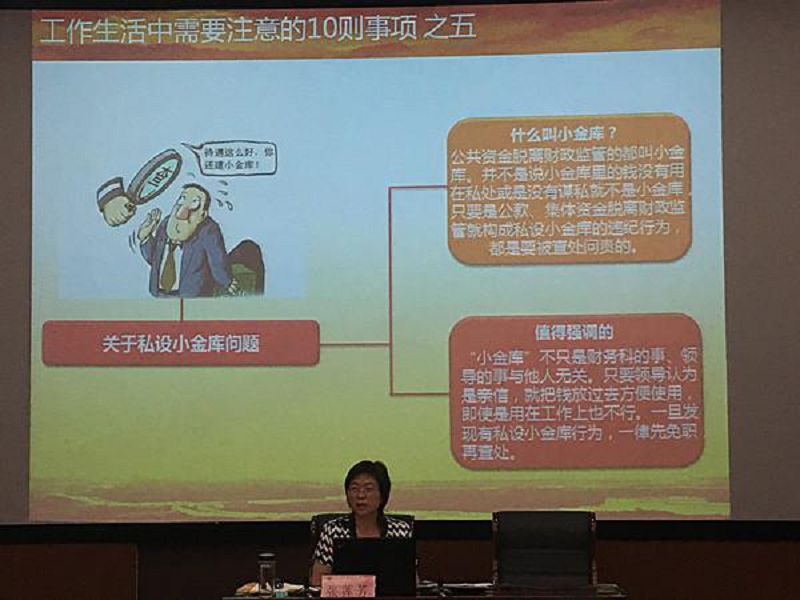 张莲芳组长结合一些具体案例和反面教材,深入剖析了腐败官员的20种病态心理,同时还总结了工作生活中需要注意的10则事项,教导全体党员干部要树立正确的权力观、地位观、利益观,常修为政之德、常思贪欲之害、常怀律己之心,构筑起拒腐防变的思想道德防线。