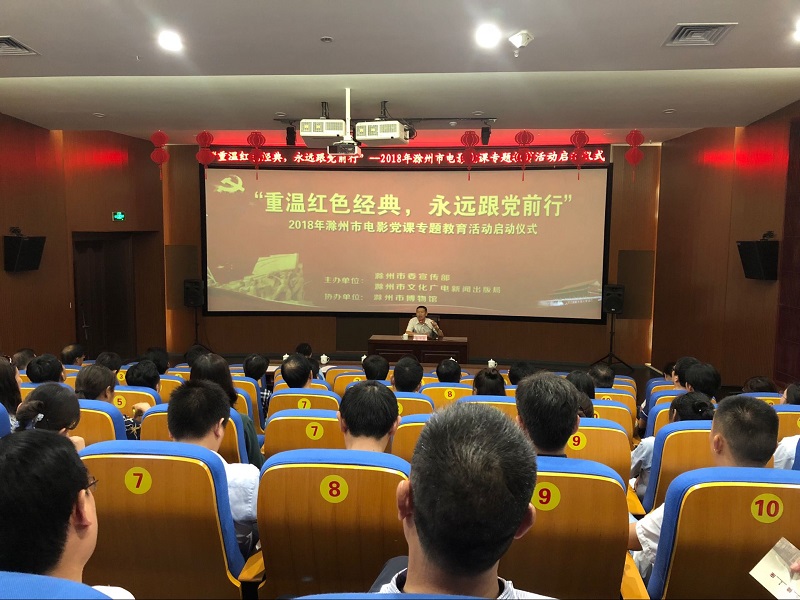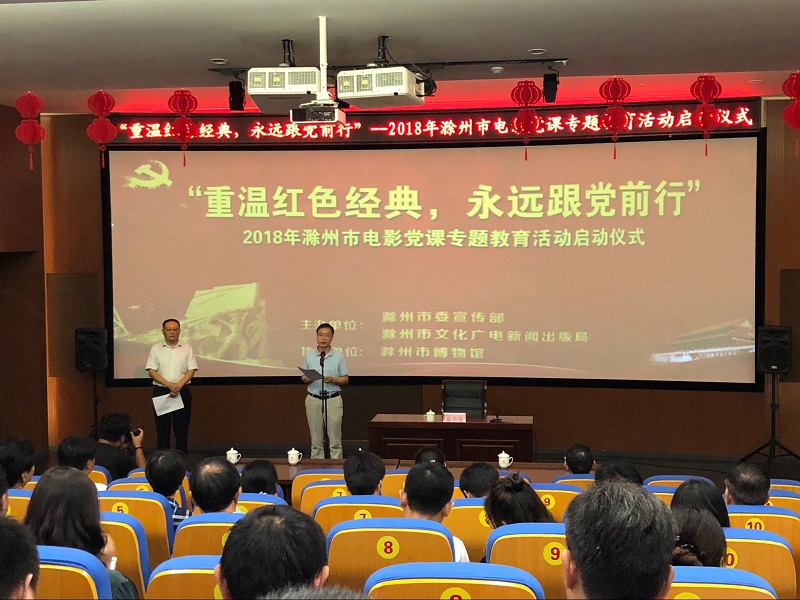 8月7日下午,由滁州市委宣传部、滁州市文广新局主办,必威betway精装版app承办的电影党课专题教育活动启动仪式在必威betway精装版app二楼会议多功能厅举行,滁州市文广新局局长郝庆孝主持,滁州市委宣传部副部长于晓波出席启动仪式并讲话,滁州市委党校副校长童子凡给大家上了一堂生动的电影党课。此次电影党课专题教育活动以“重温红色经典,永远跟党前行”为主题,将在全市范围内开展为期3个月4000场左右的电影党课进机关、进社区、进企业、进学校、进农村展映活动。