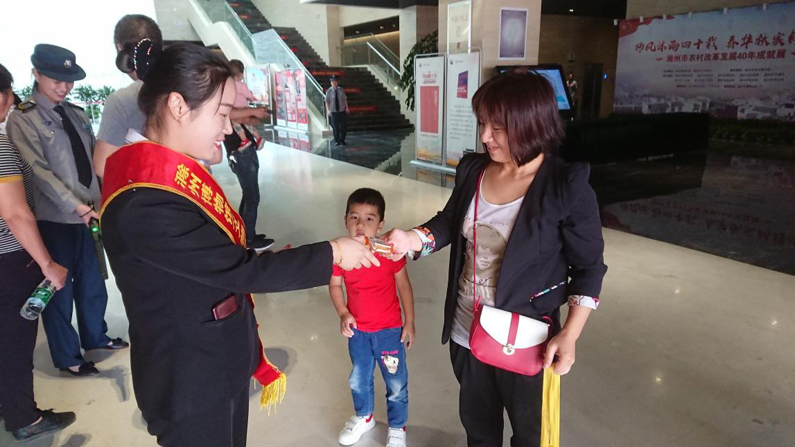 赠:博物馆工作人员为来馆参观的游客赠予节日月饼,和观众们共度传统佳节,馆内营造出团圆、和谐、幸福的节日氛围。