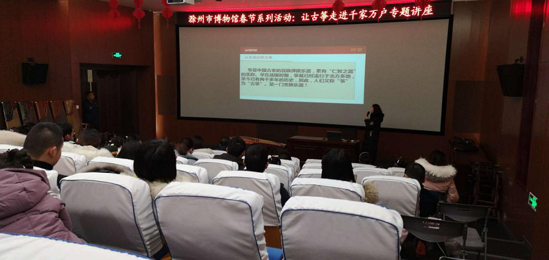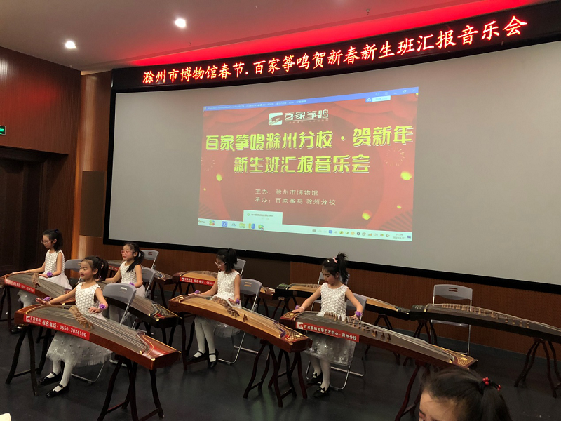 2019年1月27日,滁州市博物馆联合百家筝鸣培训中心在多功能厅举办了“我们的节日.春节”-百家筝鸣贺新春《让古筝走进千家万户》专题讲座。学员们认真听取了专家对古筝历史和发展的详细介绍,让他们对古筝这一门艺术有了更丰富的了解。下午学员们的古筝专场音乐会也让学员和家长以及到场的各位观众们感受到了一场传统音乐的盛宴。