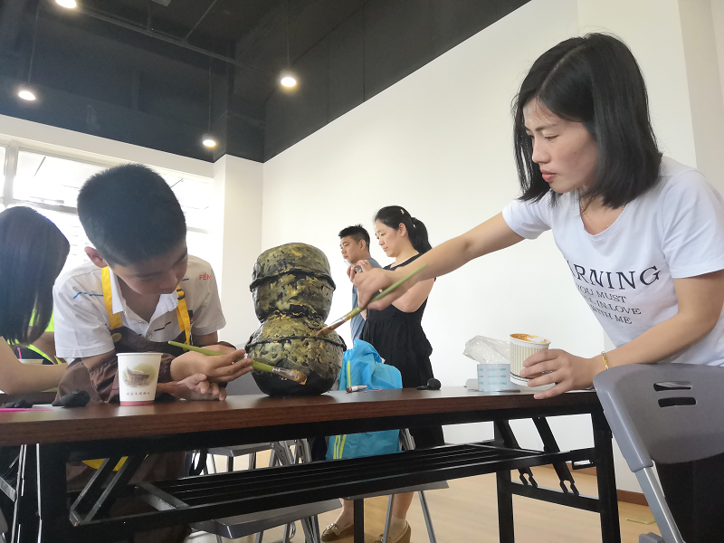 活动开始,老师先带学员们参观展厅观察了解汉铜甗的的外形以及它的用途,然后经过老师和学员们共同努力,一件件造型古朴、形态各异的“汉铜甗”终于展现在大家面前。