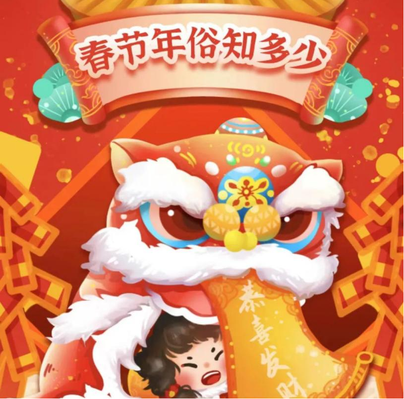 活动介绍:春节是中华民族最隆重的传统佳节,历史悠久,在传承发展中已形成了一些较为固定的习俗,如办年货、扫尘、贴年红、守岁等等。此次线上有奖答题活动,通过知识挑战的形式,更好地向市民普及春节习俗。