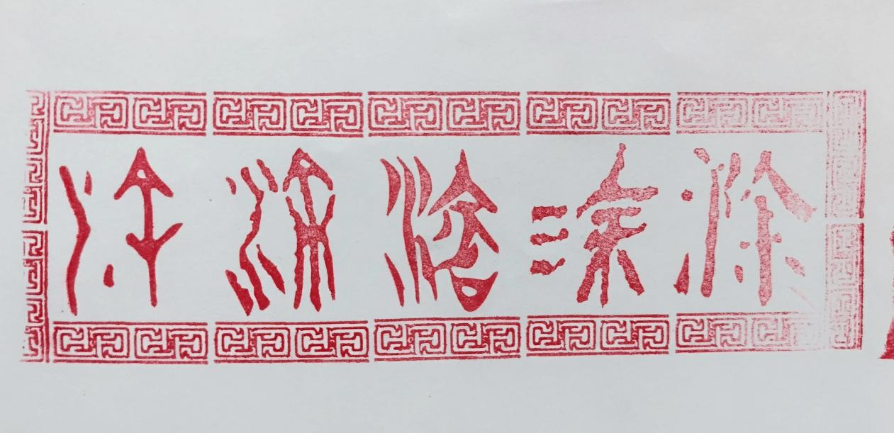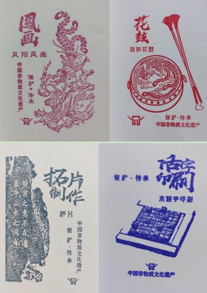 6个印章,6种不同颜色和图案,按顺序通过6次叠加盖出滁州特色套色印章。