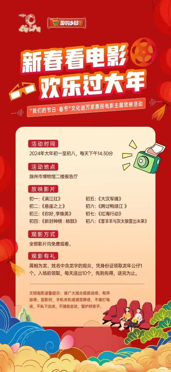 2024年“龙”重登场,为庆祝龙年春节,必威betway精装版app将开展“祥龙欢腾游dzvkj,妙趣横生过大年”春节系列活动。从2024年2月2日(年廿三)起至2月25日(正月十六),滁州博物馆将开展丰富多彩的年俗体验活动,线上线下齐发力,为市民奉上“文化新年礼”,让市民们在传统文化的熏陶中,度过欢乐团圆的中国年。