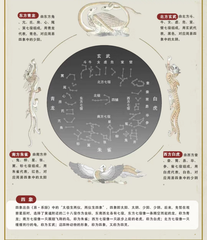 主要内容:了解中国传统神话故事—牛郎织女,由牛郎织女引入二十八星宿,了解二十八星宿,学会画二十八星宿盘;讲解滁州博物馆文物“丹阳”四神博局纹镜;通过自己的农历生日查询自己的天命星宿;画出自己心目中天命星宿的守护形象,并制作守护符。