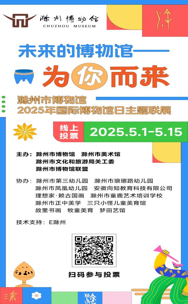 各类青少年儿童美术作品围绕滁州文物(如明皇陵石刻、汉带流甗型器)、山水风物(琅琊山、醉翁亭、明光火山、大柳草场、定远大横山)、非遗文化(凤阳花鼓、天官画、凤画)展开创作,以童趣视角诠释“博物馆的未来”。沉浸式体验:设置“文物复活”AR互动区,扫描画作即可邂逅动态墨韵、聆听创作故事。