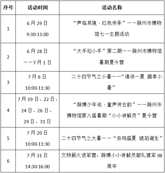 主要内容:大暑是二十四节气的第十二个节气,也是夏季最后一个节气,此时天气最为炎热。为了让未成年人了解传统节气文化,感受古人的生活智慧,滁州博物馆特开展 二十四节气之大暑——“虫鸣盛夏 琥珀凝生”活动。