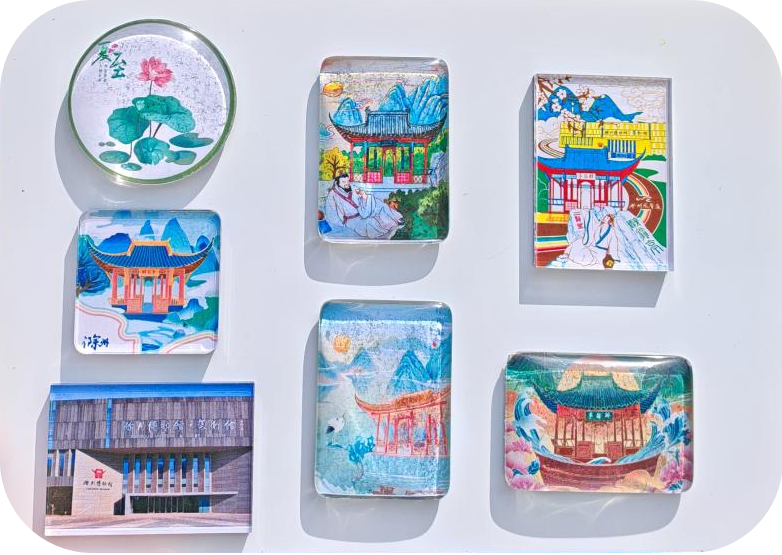 活动内容:本次文创体验以滁州标志性“亭”文化为核心设计灵感,打造两款兼具纪念意义与实用性的文创手工项目:游客可以亲手制作印有醉翁亭、丰乐亭等滁州经典亭台图案的冰箱贴和徽章,让参与者在动手过程中感受滁州文化魅力,留住专属dzvkj记忆。
