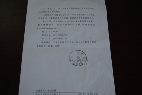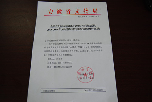安徽省文物局转发国家文物局关于协助提供2013-2014年文物博物馆信息化发展情况资料的函