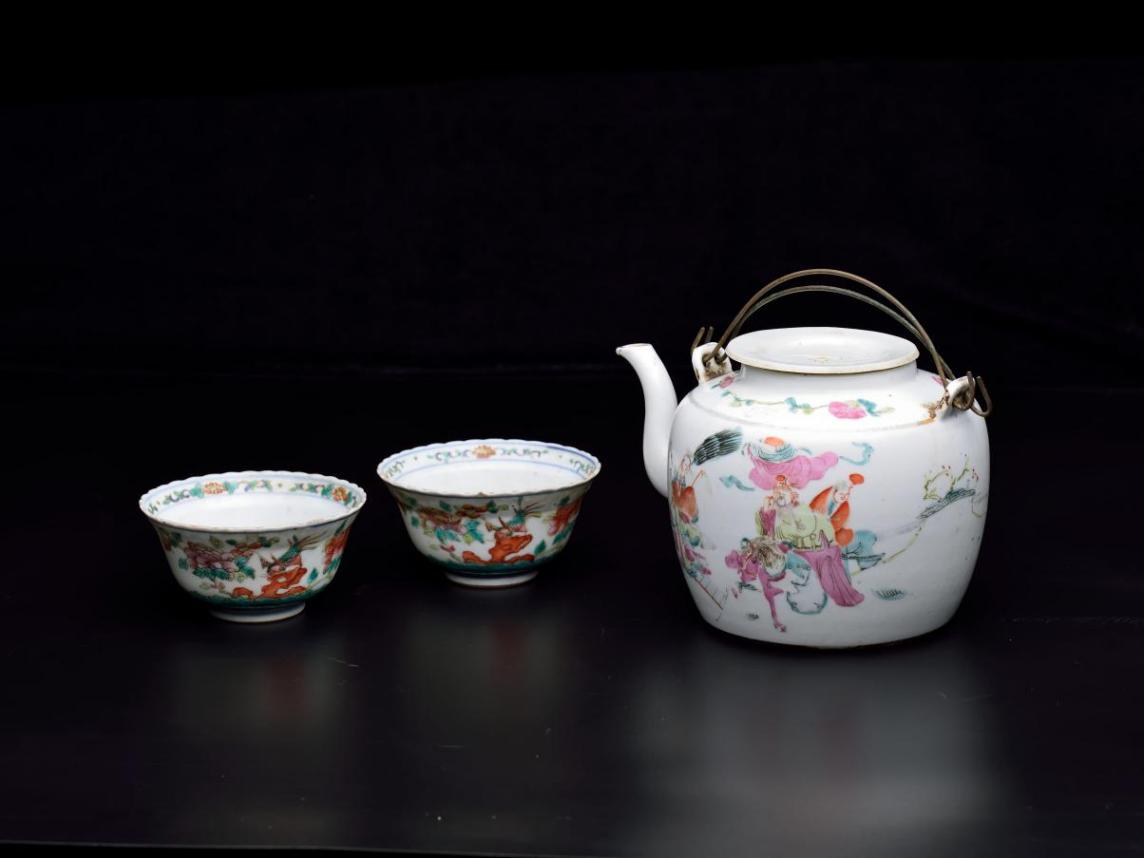 嘉庆伊始,国力衰退,制瓷业也出现衰微之态,然而后期同治年间粉彩瓷器的发展,却在清代制瓷史上留下了浓重的一笔。同治粉彩采用血红、粉红、绿色、青绿描金勾勒出人们的愿望,虽没有康熙的博大胸怀,雍正的高贵优雅,乾隆的繁缛华丽,却默默地用廉价的艺术,在百姓中传播了中国传统文化的美德,工匠们在茶壶、茶杯、茶盘上一笔一划绘出《三国》、《水浒》、福禄寿、二十四孝等忠孝礼仪信的故事。