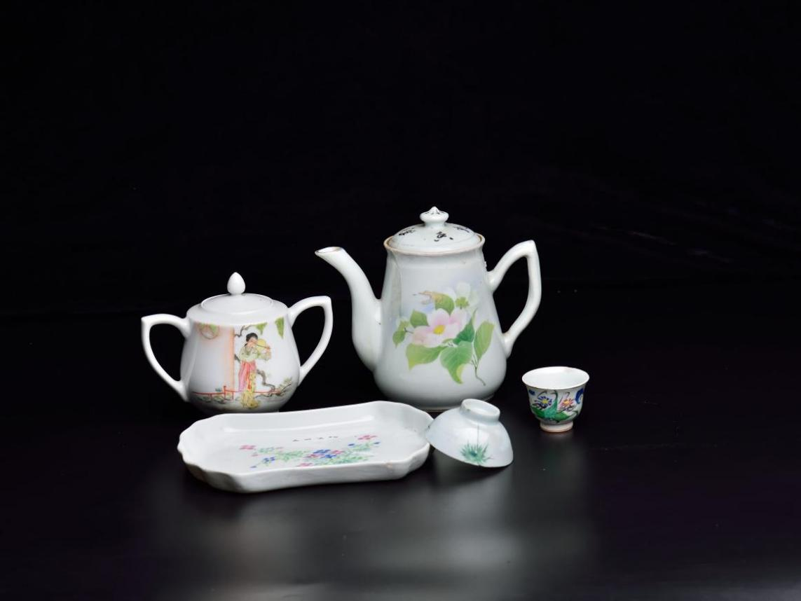 醴陵瓷彩绘仕女茶罐、印花花卉壶彩绘茶盘小杯 ·近代