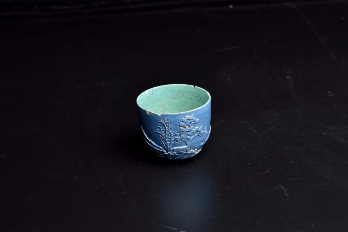 雍正时期开始这种蓝料偶尔也会被拿来绘画器物。蓝料彩属于低温彩,在预先烧好的瓷胎上描绘,再二次入窑低温烧制。虽然属于低温彩,但是它的硬度却很高,大概在八度左右,釉下气泡处为多晶体,细看还有细碎的小开片,纹饰看起来非常有质感。