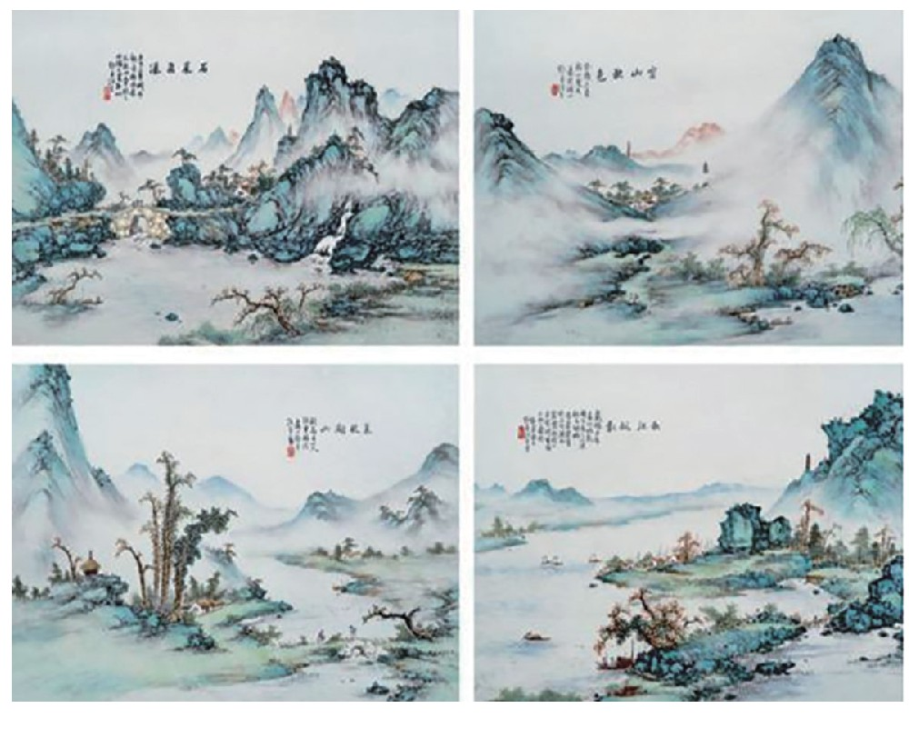 粉彩青绿山水瓷画汪野亭作(图片来源于网络)