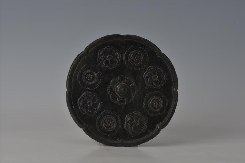宝相花纹铜镜主要有葵花形和菱花形两大类。葵花形宝相花纹铜镜主要以花瓣钮座为主,大多为各种莲花型钮座,钮座外则是用不同形态的六朵或者八朵花瓣相搭配。