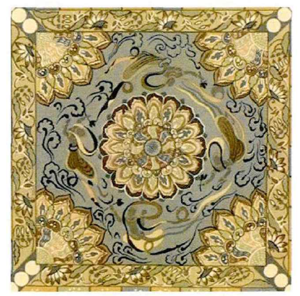 “修罗衣裳照暮春,蹙金孔雀银麒麟,”中国古代纺织技术极为发达,各种织物色彩丰富细腻,装饰纹样大胆活泼,宝相花纹样因其繁缛富丽、寓意吉祥,在传统织物上的应用极为广泛。宝相花作为织物的主体纹样或辅助纹样,常与瑞草、禽鸟、折枝花等搭配使用,呈现出绚丽多彩的视觉效果。