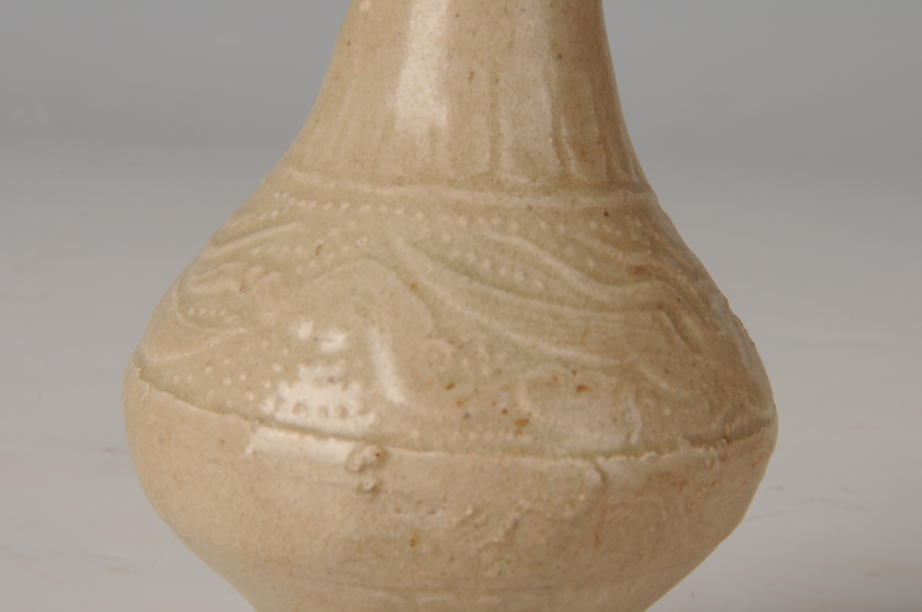 凤的形象用于瓷器的装饰,隋唐时期便有相当流行的凤头壶、凤首瓶等,唐宋时期的凤穿牡丹纹更是瓷器的常见纹饰,元明清时期用刻划、笔绘等手法来表现凤纹更是得心应手,画面也更加多样化。必威betway精装版app的这件双凤纹瓶,凤纹刻划精细,线条流畅,凤鸟振翅飞行于瓶身,整体呈逆时针盘旋,动态感十足,修长的凤尾飞扬向上,更显其轻盈灵动之态。