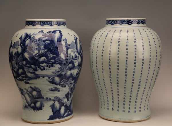 清康熙青花《醉翁亭记》山水诗文大将军罐